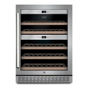 Тип: двухкамерный винный шкаф • Расположение: отдельностоящий • Количество компрессоров: 1 • Цвет: нерж.сталь • Размеры (ШxВxГ): 595x825x625 мм • Количество дверей: однодверный • Винный шкаф: 40 бут. • Управление: цифровой дисплей, электронное • Освещение в холодильной камере: есть • Холодильная камера: полка для бутылок x 5 • Материал полок: дерево
