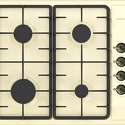 Поверхность: варочная панель • Тип поверхности: газовая • Рабочая поверхность: эмаль • Число конфорок: 4 • Установка: независимая • Газовые конфорки: всего - 4 • Газ-контроль конфорок: есть • Тип управления: механическое • Переключатели: поворотные • Электроподжиг: есть, автоматический • Размеры: 585x505x97 мм • Размер ниши для встраивания: 555x475 мм • Цвет: панель - бежевый