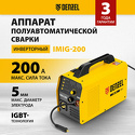 Производитель: Denzel Модель: IMIG-200 - ручная дуговая сварка (MMA)/полуавтоматическая сварка (MIG MAG FCAW) - входное напряжение 200–230 В - сварочный ток: 20-200 А Описание
