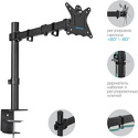 для мониторов • 10-34" • 1 монитор • настольный • поворотный • с регулировкой высоты • кабель-канал • струбцинное крепление • наклон 80° • поворот 360° • цвет черный