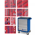 Комплектация1/2" Головки и принадлежности, 3/8" Головки и принадлежности, 1/4" Головки и принадлежности, ключи комбинированные, ключи накидные, вставки (биты), спецголовки и насадки, набор демонтажный, отвертки, ключи трещоточные, ударно-режущий инструмент, шарнирно-губцевый инструмент, съёмники стопорных колец