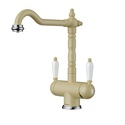 Комплектация - Смеситель, комплект подводки, полный набор креплений для подключения, инструкция, гарантийный талон, салфетка из микрофибры, Покрытие - Золото, Коллекция - Antique times, Материал корпуса - Латунь, Присоединительный размер - 1\2", Тип подводки - Гибкая, Назначение - Для мойки, Тип - Однозахватный, Количество монтажных отверстий - 1, Аэратор - Есть, Высота - 30.6, Форма излива - Традиционная, Высота излива - 236, Поворотный излив - Да, Длина излива - 215, Цвет - Золотистый, Ширина - 15