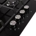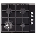 Варочная поверхность, газовая, панель из закаленного стекла, 4 газовые конфорки, трехконтурная конфорка, переключатели поворотные, электроподжиг
